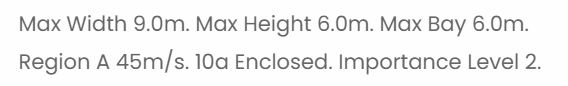 At the top of the building details page you can see the details of the building category you’ve chosen to use and the windspeed for your site address.