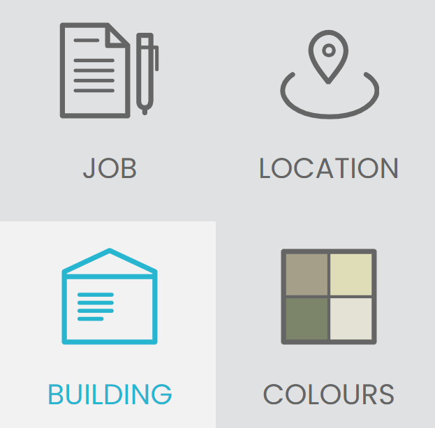 Different building categories will have different roof pitches available, as will gable and skillion designs. The roof pitch drop-down will show the options available for your current building.
