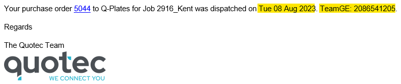 Each time an update is made to any status dates of your order you will receive an email from Quotec with the updated information and a link to your purchase order page. These emails are set up to be sent to the user assigned to the job so to make sure the correct person is receiving these emails. You can update the assigned user or specify the recipients in the email type.