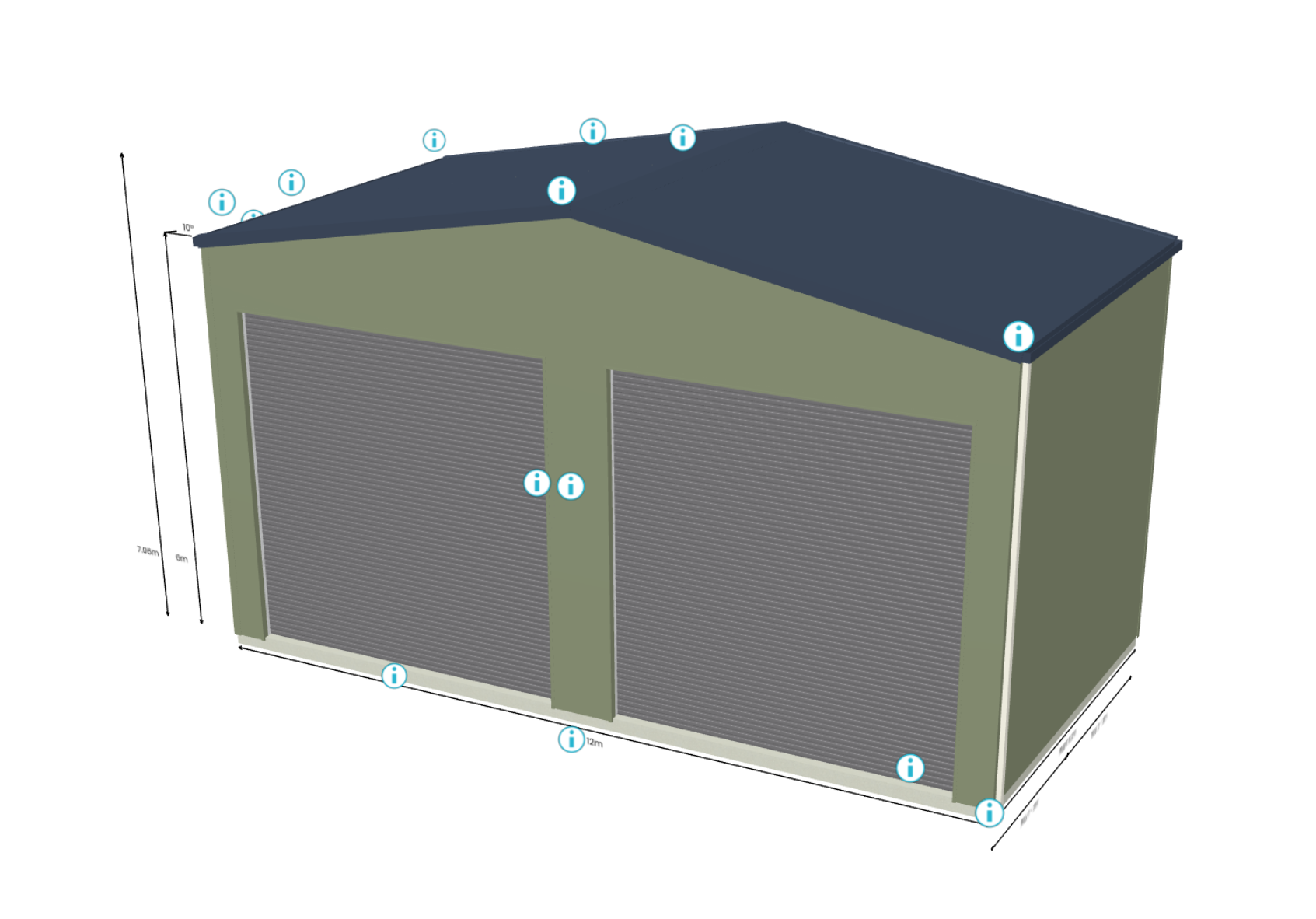 Building: Edit the building dimensions, roof pitch, slab connection, knee brace option, bays, cladding orientation, or frames. See https://quotec.atlassian.net/wiki/spaces/QUD/pages/127238287.
