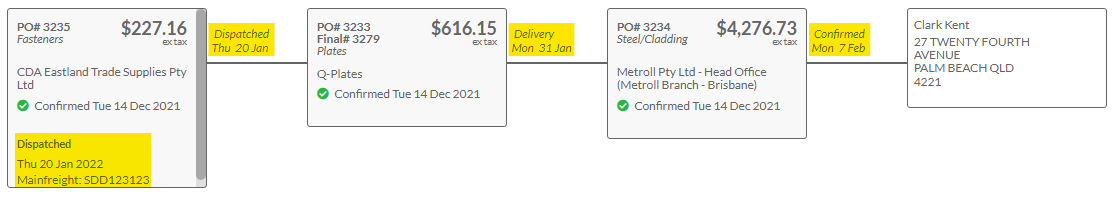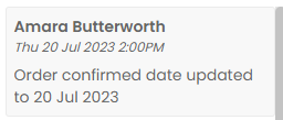 Once you receive confirmation from your supplier update the dispatched date. If you’ve been provided tracking information for the delivery this can be added as a note.
