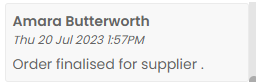 If you send your orders manually to your suppliers you may wish to add a note once you have done so.