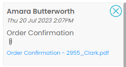Once you get your order confirmation documents you can attach these in the “Notes” section to make them easy to find in the future.