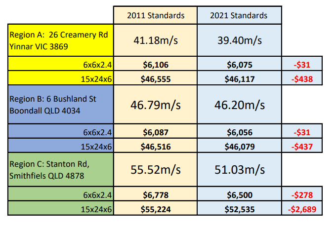 Windspeeds are what drive the engineering used for our sheds. In this version, we have made a number of updates to further improve the windspeed calculations. We have updated from AUS/NS 1170 2011 to 2021 and we more accurately calculate the windspeed based on building height. Not all buildings will notice a change but we have generally seen a drop of one level of engineering across Region B and C, and in some cases even two! This will significantly improve the costs and make you more competitive!