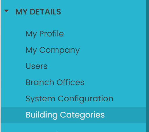 To access this, select Building Categories from the My Details menu.